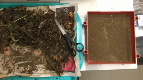 A Humusz házból és az egyetem tetején lévő VAK (minta mentes) komposztból is mintát vettünk, kiszárítottuk, majd felaprítottuk. Ez volt a kísérletek alapja.