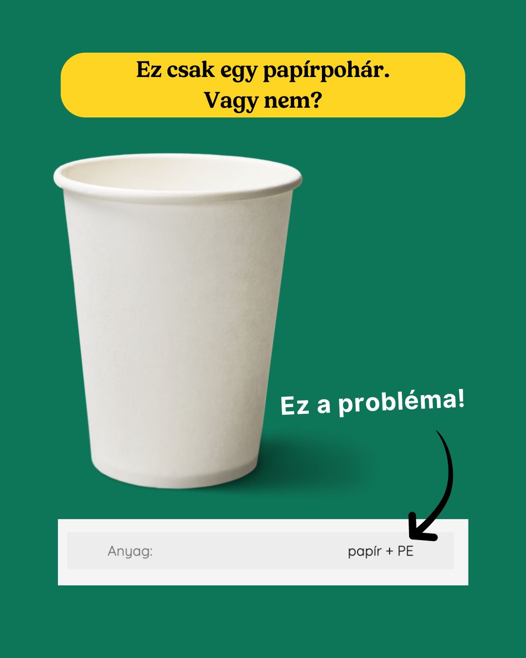 - A legtöbb papírpohár műanyaggal (PE vagy PLA) van bevonva, hogy ne ázzon át és tartsa a hőt. Így viszont nem lehet újrahasznosítani, mert nem lehet szétválasztani a papírt és a műanyagot.