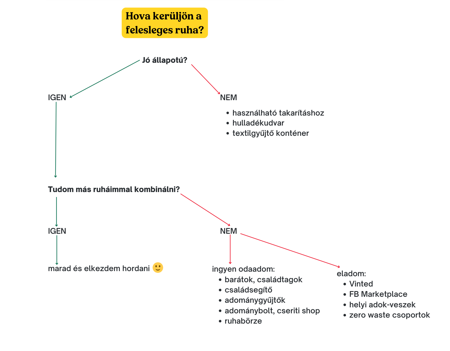 Az alábbi ábra a segítségedre lesz abban, hogy hova érdemes vinni a már megunt vagy feleslegesé vált ruhákat.